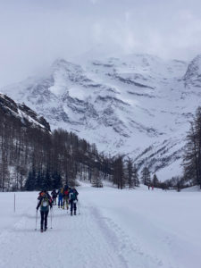 Nous prenons notre pique-nique au chaud dans le foyer de fond du Carreley à Bessans, puis nous allons garer les voitures sur un parking situé après le centre de vacances de la Bessannaise (1 730 m).