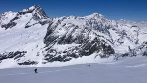 Photos : Le col d’Arnès et la montée sur le glacier d’Arnès avec nos 3 stars.