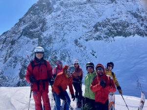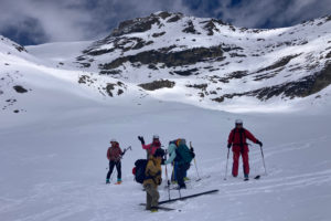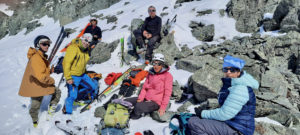 Nous poursuivons alors à 7 et prenons le relais pour faire la trace. Après une alternance de relais, nos championnes qui doivent rejoindre le refuge Gastaldi par le col d’Arnès, décident de faire un petit extra par la Pointe Marie et de nous suivre. Elles reprendrons finalement le relais et nous conduiront jusqu’au sommet. Grand merci à elles !