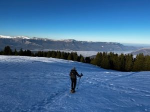 L’occasion de rappeler que le départ de l’itinéraire rando au bout de la route de Bachat Bouloud après l’épingle et permet de monter sans croiser de piste avec des vues superbes sur le grand Serre ou le Taillefer.