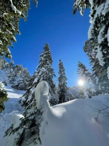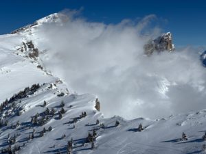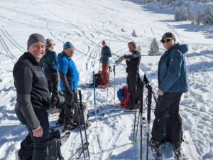 Redescente par les pistes pour certains et par la piste bien nommée de Combeauvieux pour d’autres (ancienne noire bien physique en poudreuse traffolée mais bien nommée au vu de l’âge moyen des descendeurs)