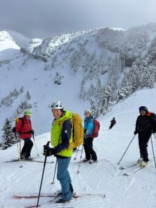 Tout ce petit monde est monté sans problème à la tête des chaudières par la combe de fer dans une excellente neige qui a permis à la plupart de ne pas dépeauter.